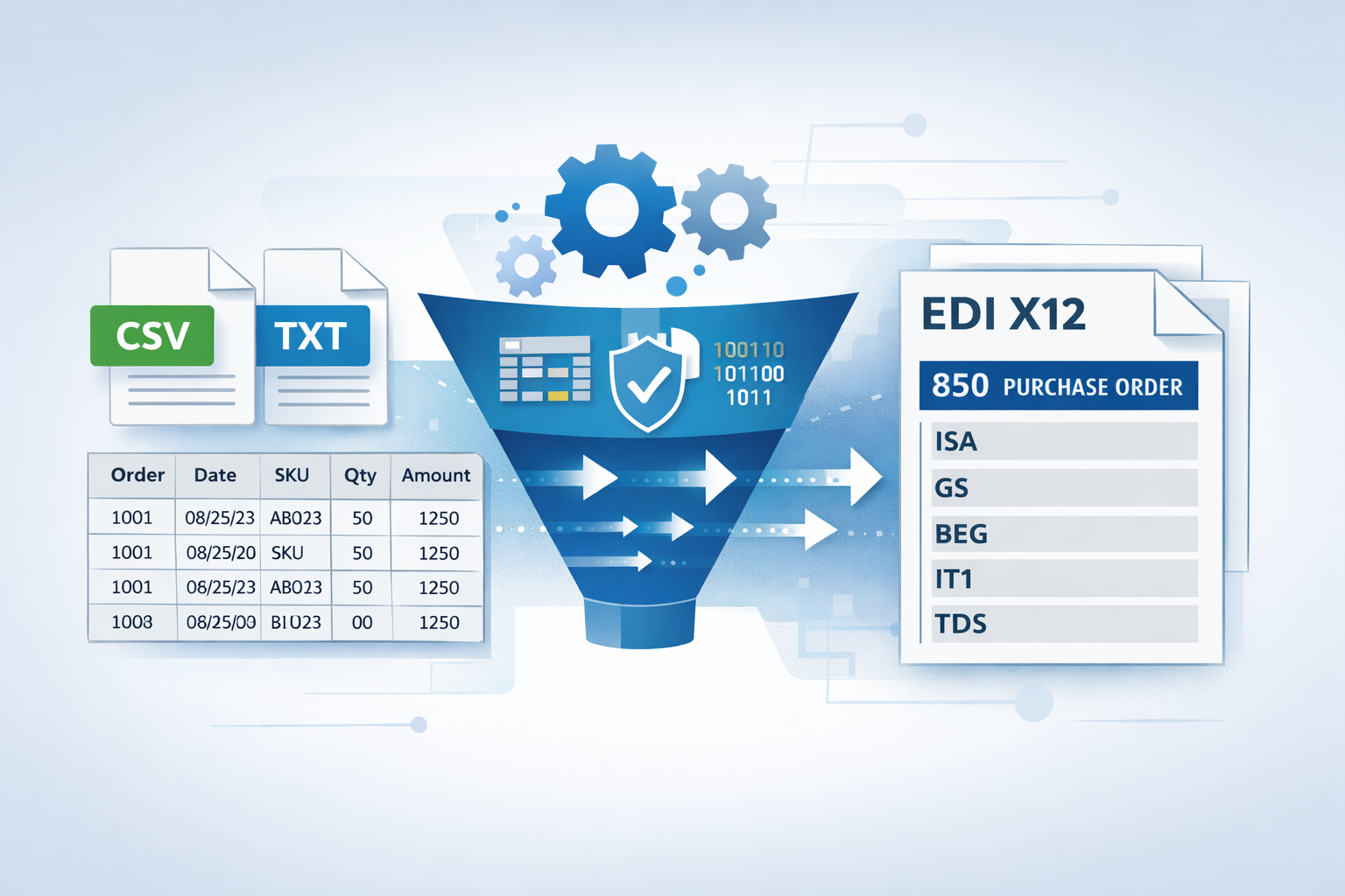 Learn how to convert flat files (CSV, TXT, Excel) to X12 EDI quickly and safely. Step-by-step guidance to automate mapping, validation, and compliance without downtime.